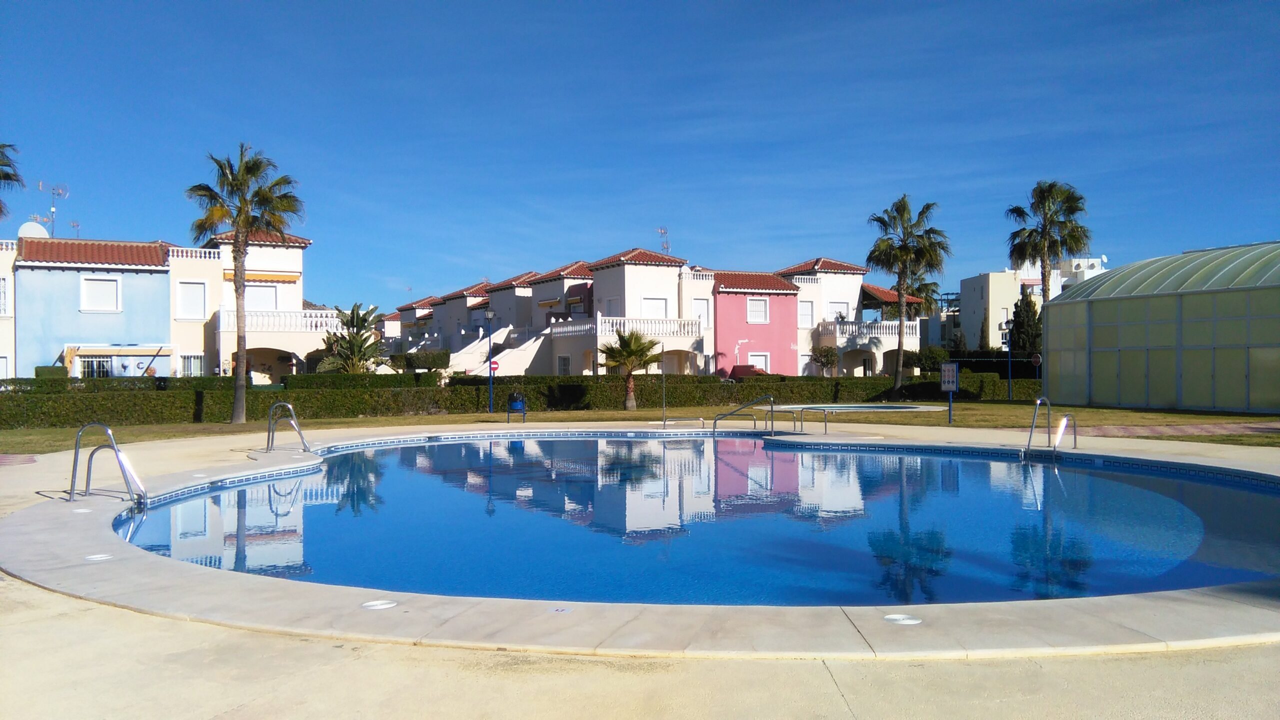 Extraordinaria urbanización en primera línea de playa, con gran piscina de verano, piscina climatizada para uso en invierno (cerrada los meses de Julio y Agosto), jacuzzi (integrado en la piscina de verano), salida directa a la playa. Zonas ajardinadas. Wifi gratuito. Parking opcional.