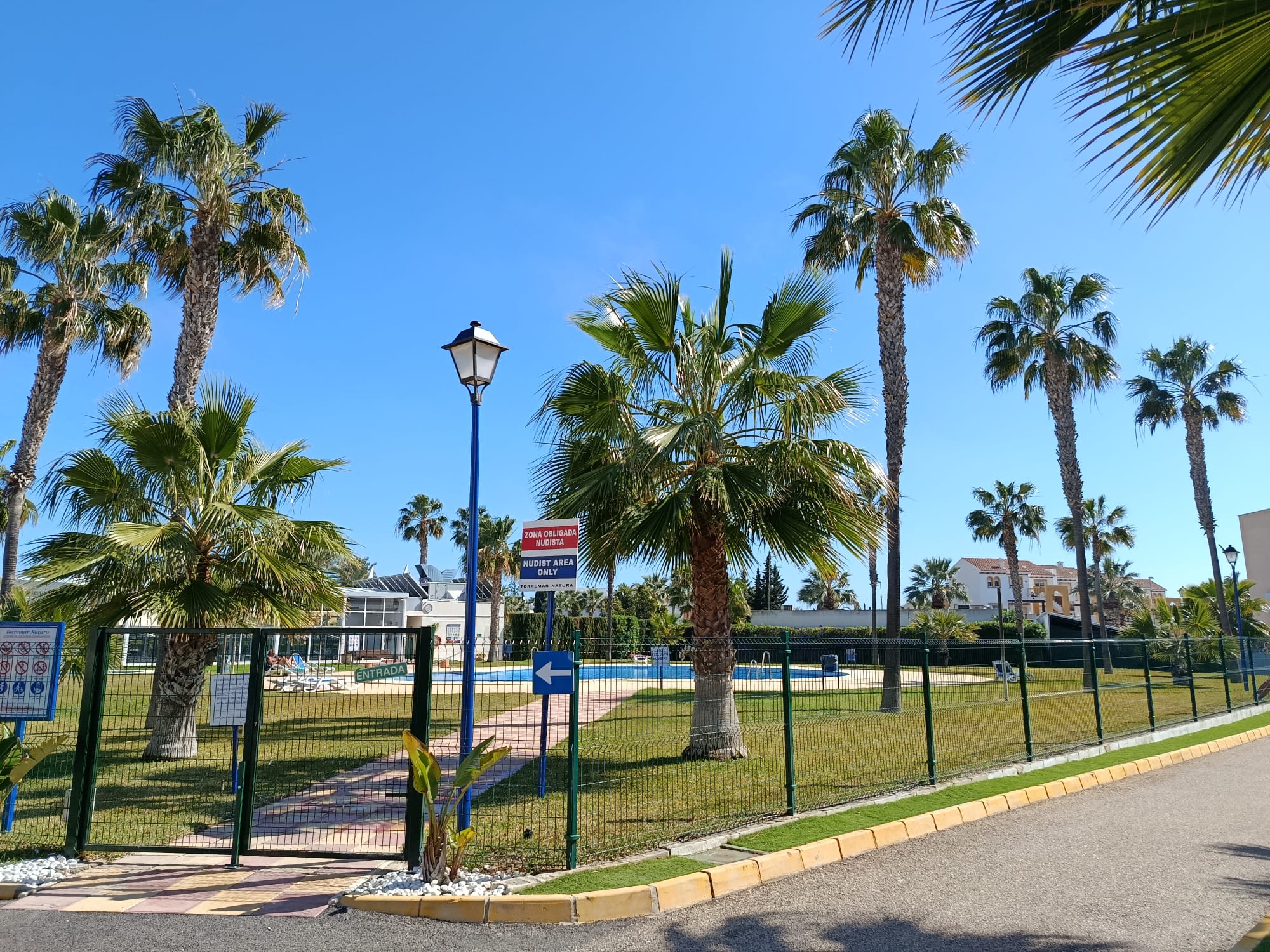 Práctica naturista obligatoria en piscinas. Esto significa que es obligatorio permanecer desnudo en el recinto de las piscinas. En el resto de zonas comunes de la urbanización no hay restricciones.