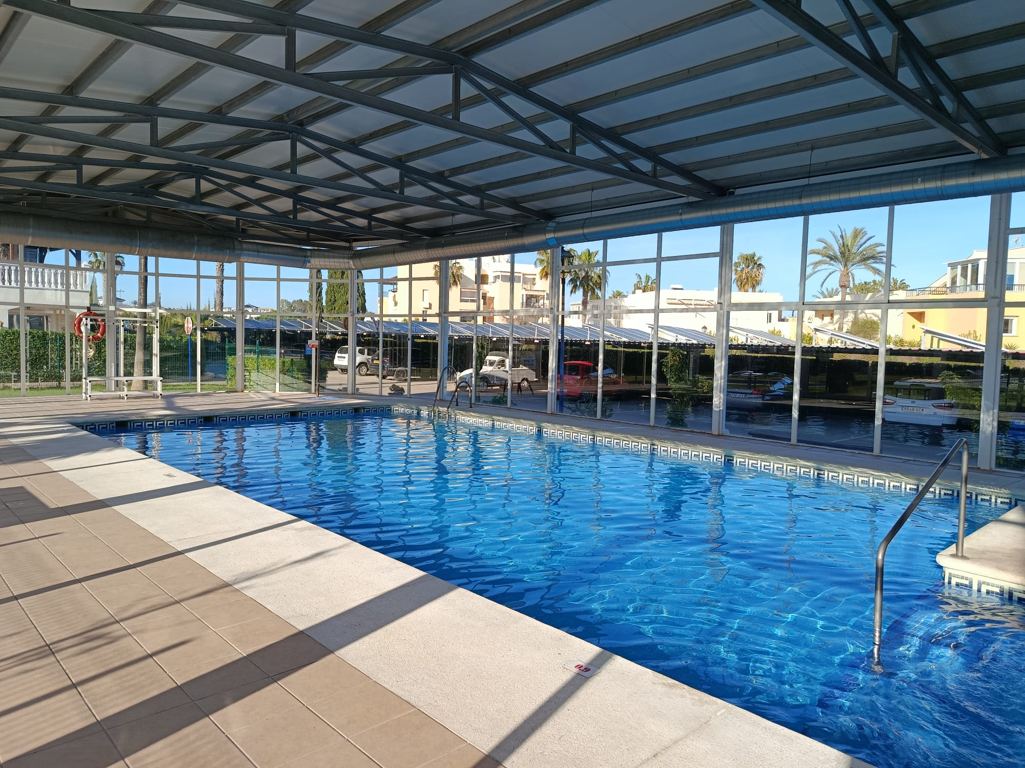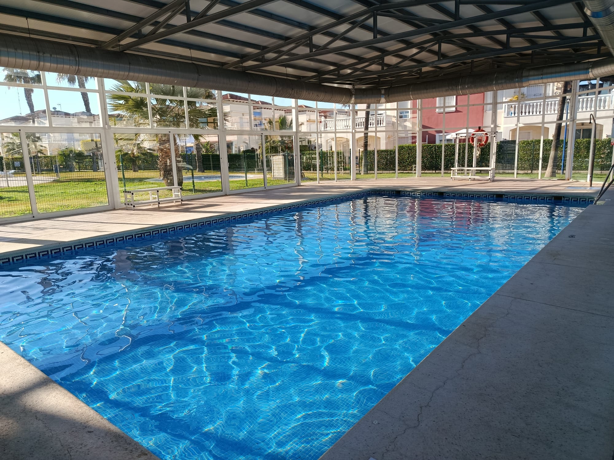 Estupenda urbanización cerrada, con zonas ajardinadas, piscina para uso de verano, excelente piscina climatizada cubierta para uso todo el año, jacuzzi (integrado en la piscina climatizada) y piscina para niños, tenis, tenis de mesa. Salón de juegos y biblioteca con Wifi gratuito. Parking dentro del recinto. A 150 metros de la playa.