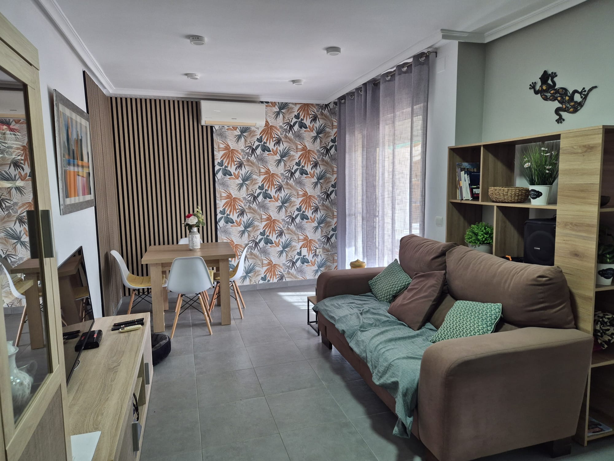 Estupendo apartamento completamente amueblado y equipado. Dispone de un amplio salón comedor, un dormitorio con cama de matrimonio de 1,50 . Baño completo con bañera, amplia cocina completamente equipada (cocina vitrocerámica, frigorífico, lavadora, microondas, cafetera, tostador, menaje y utensilios para cocinar). Es una PLANTA BAJA con jardín privado y cerrado. Excelente ubicación dentro de la urbanización junto a las piscinas. Orientación SUR, muy buena y adecuada para todos los meses del año. Wifi gratuito en apartamento y zonas comunes. Plaza de parking exclusiva dentro de la urbanización.