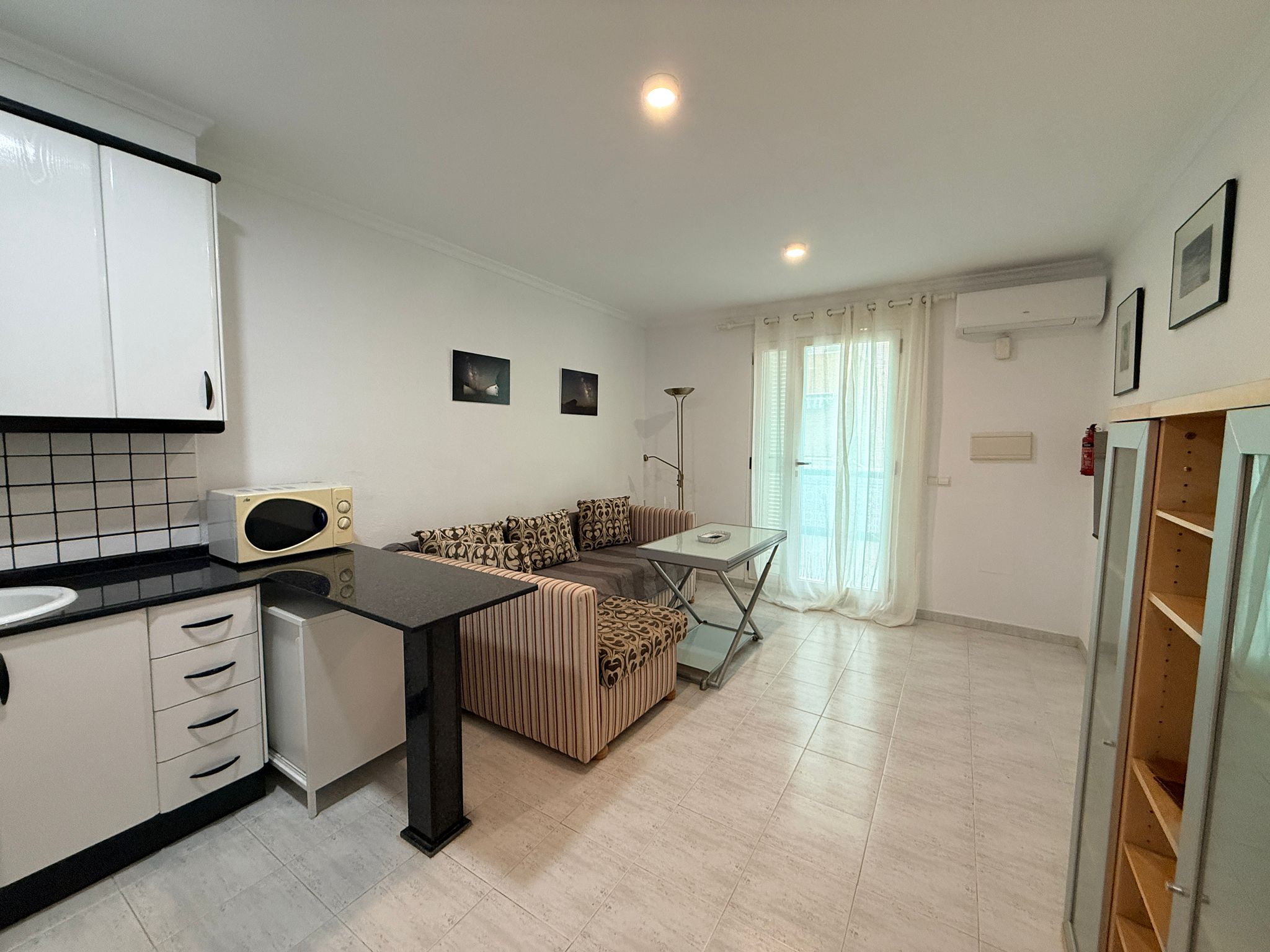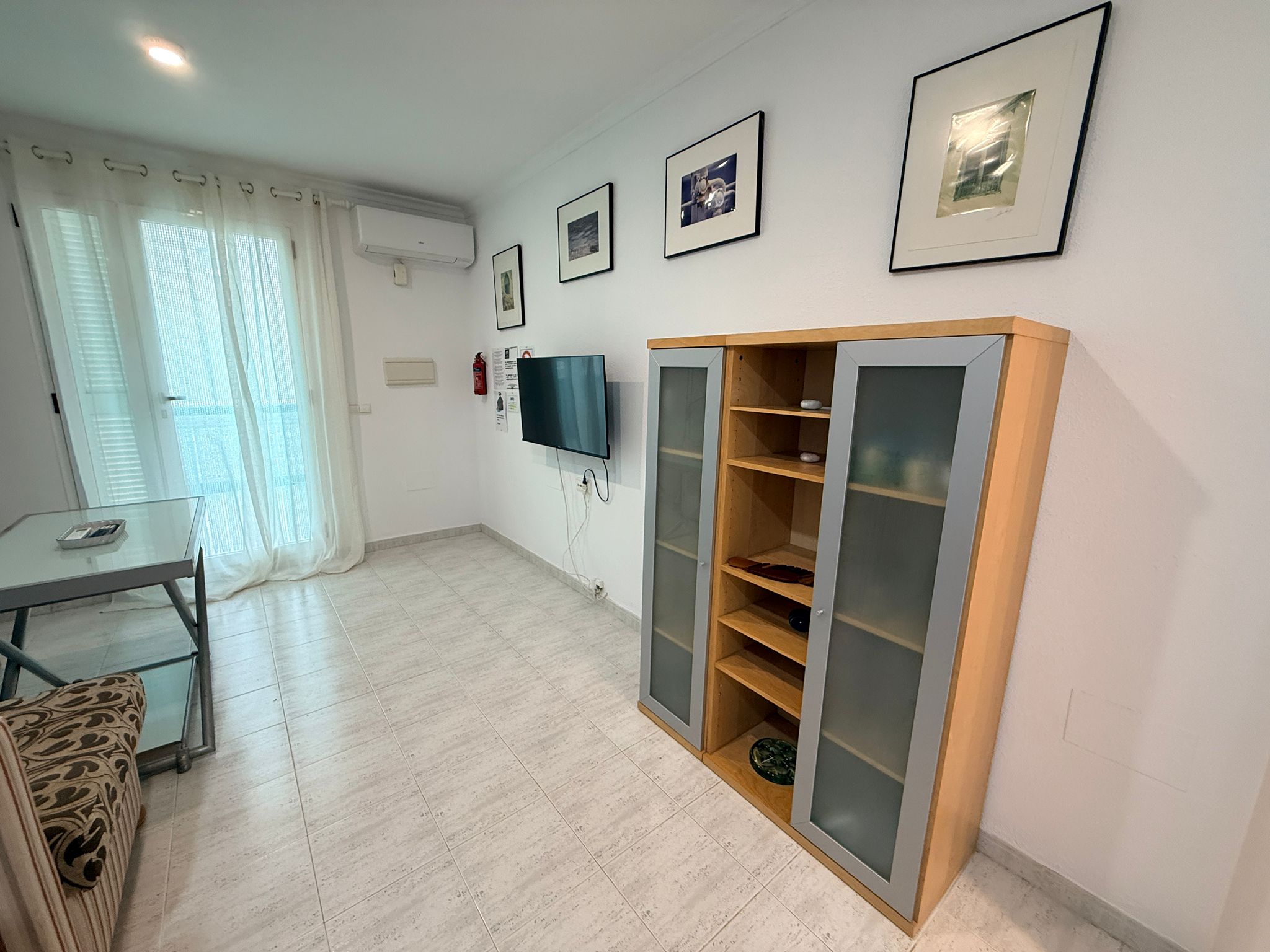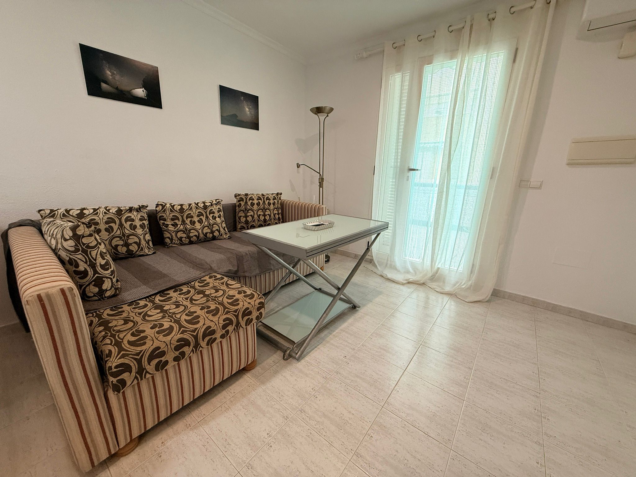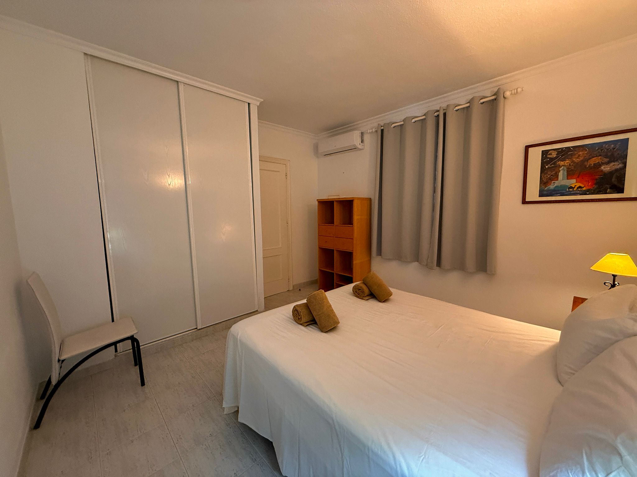 Apartment with one bedroom, a double bed (150 cm), living room with a comfortable sofa, one bathroom with a large bathtub, fully equipped kitchen, located on the first floor with a terrace. East/south orientation, very sunny and suitable for all months of the year. Air conditioning (hot/cold) in the living room and bedroom. TV with internet in the living room. Free Wi-Fi in the apartment and common areas. Optional parking subject to availability with an additional cost.