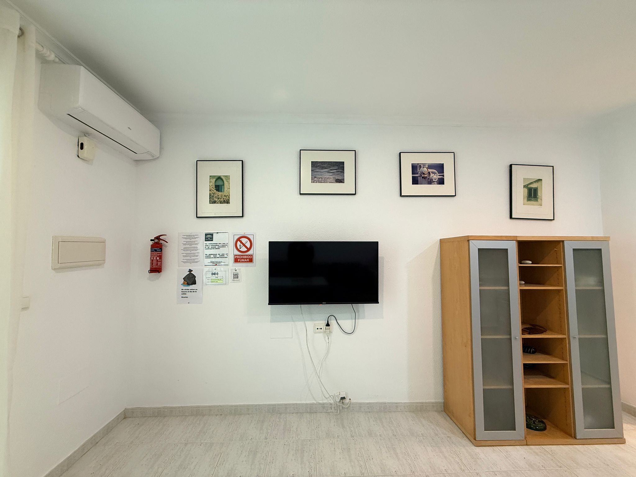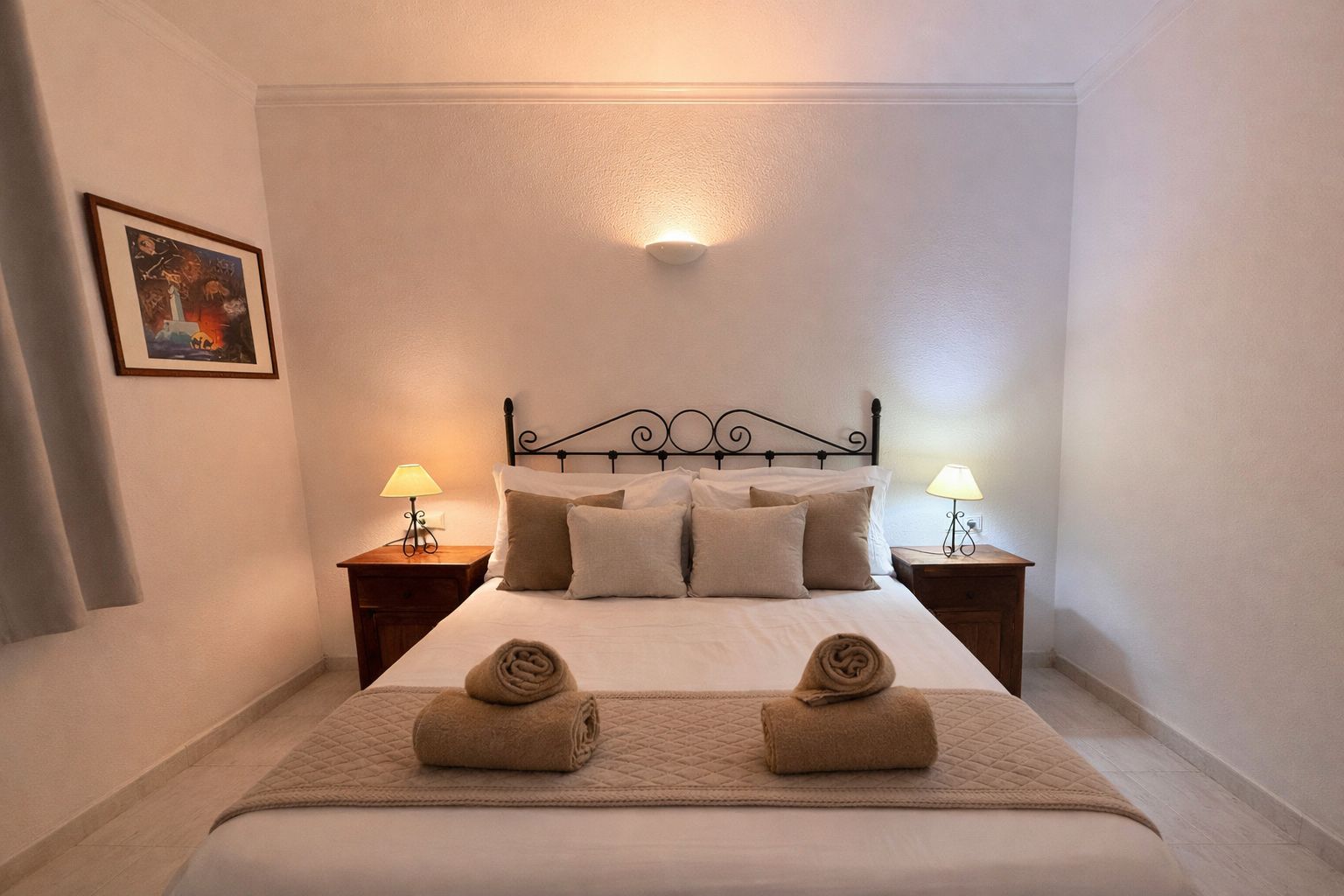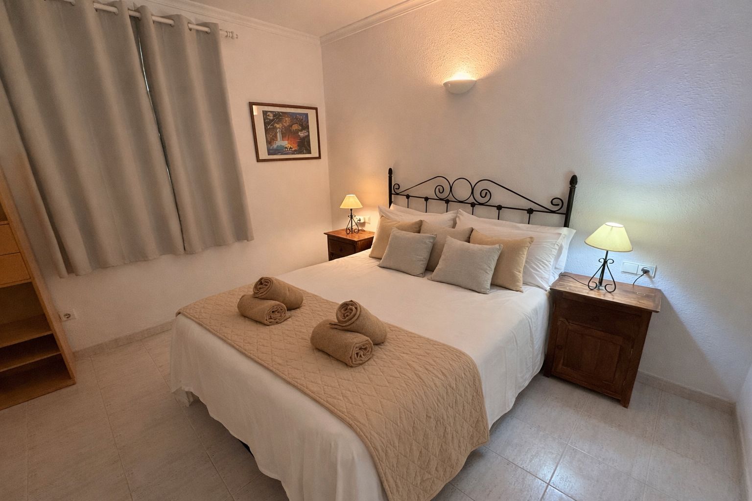 Apartment with one bedroom, a double bed (150 cm), living room with a comfortable sofa, one bathroom with a large bathtub, fully equipped kitchen, located on the first floor with a terrace. East/south orientation, very sunny and suitable for all months of the year. Air conditioning (hot/cold) in the living room and bedroom. TV with internet in the living room. Free Wi-Fi in the apartment and common areas. Optional parking subject to availability with an additional cost.