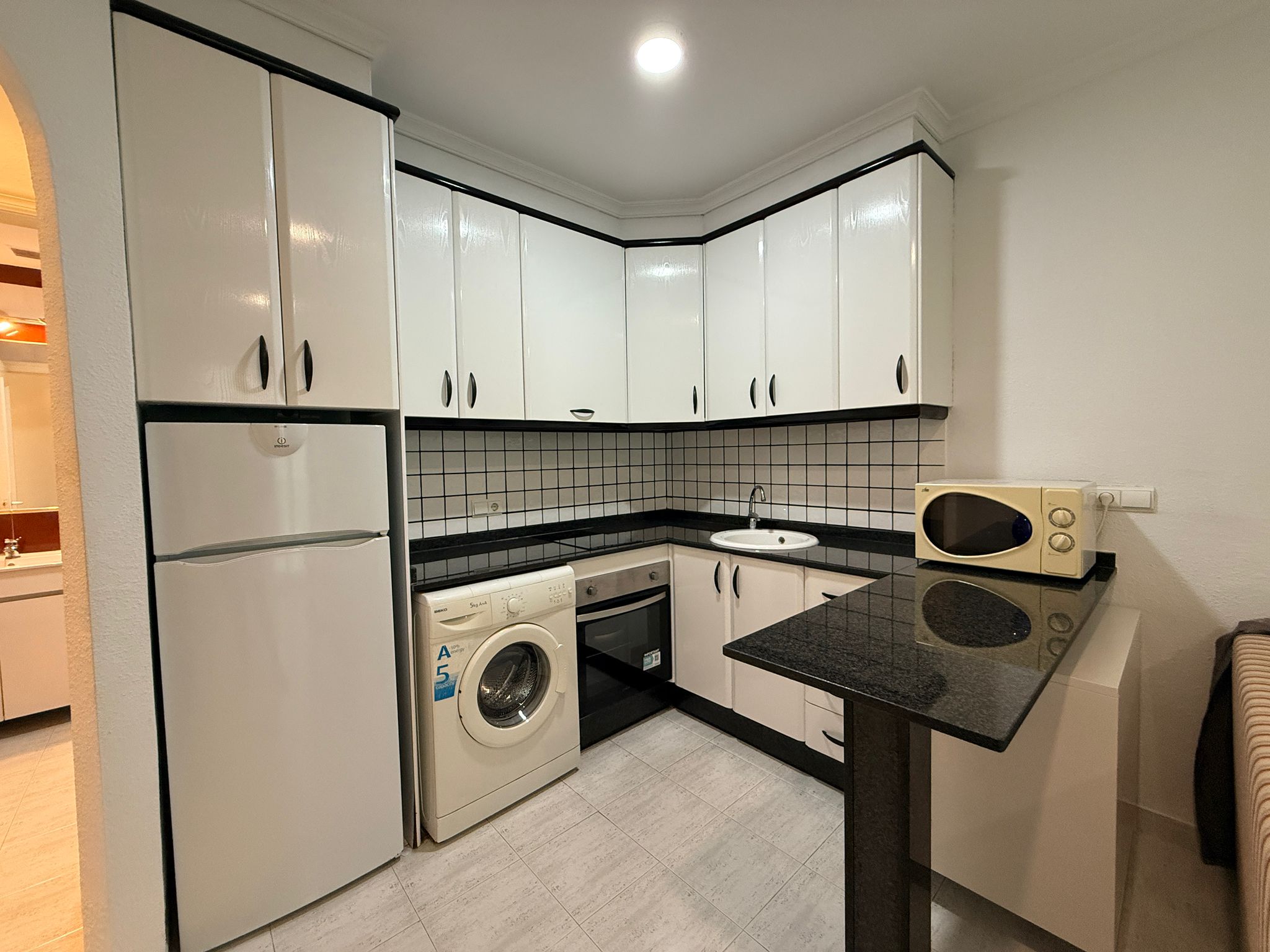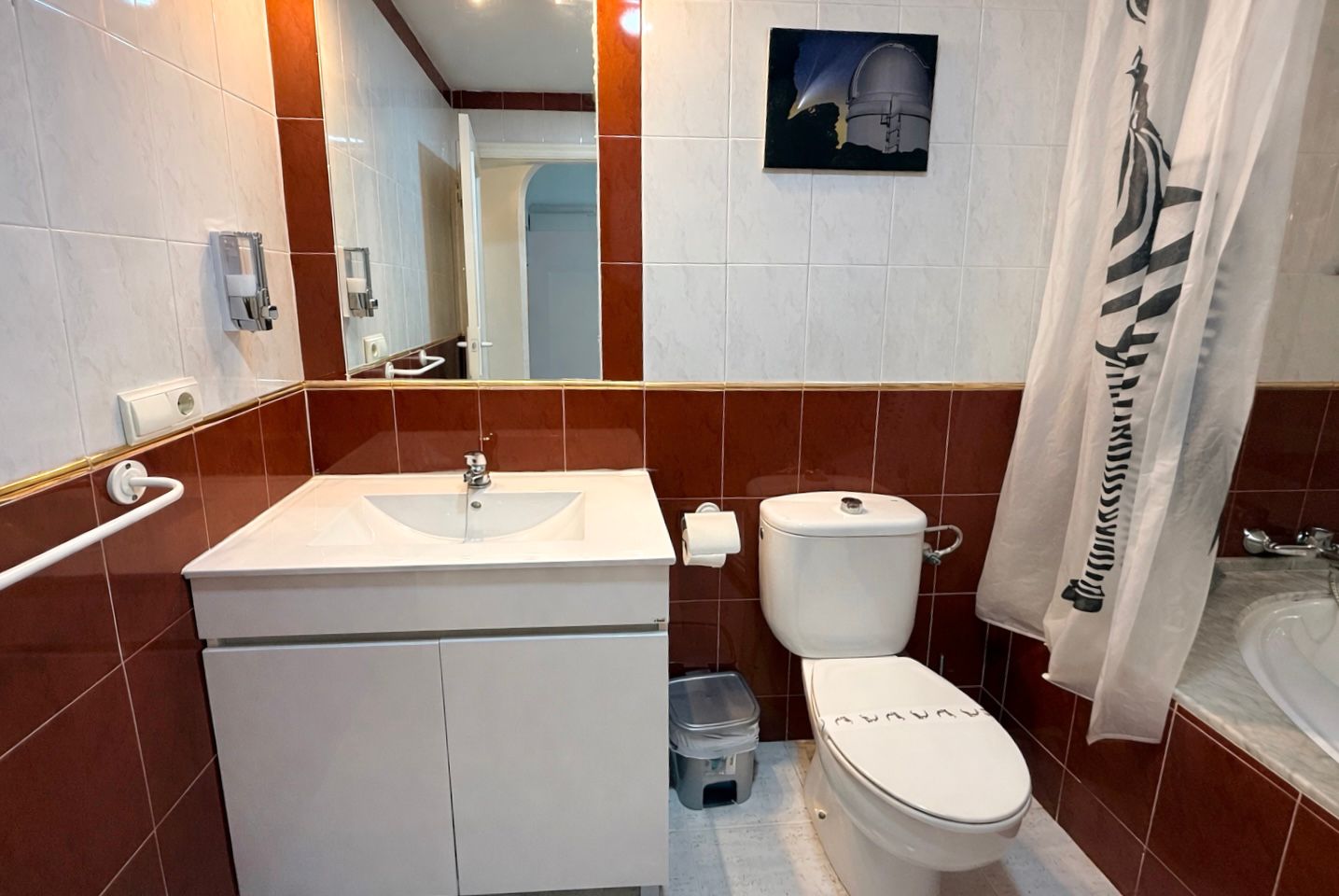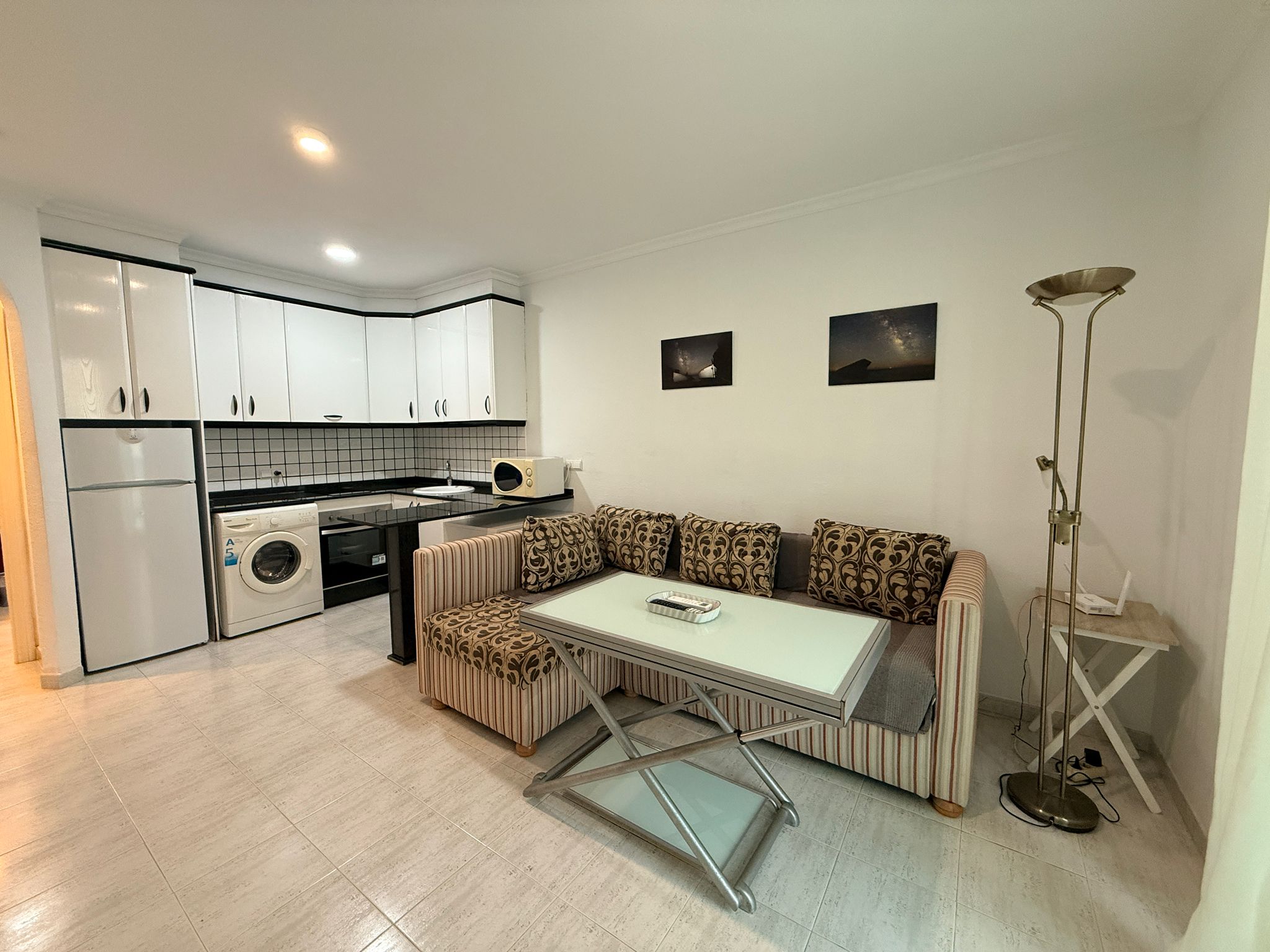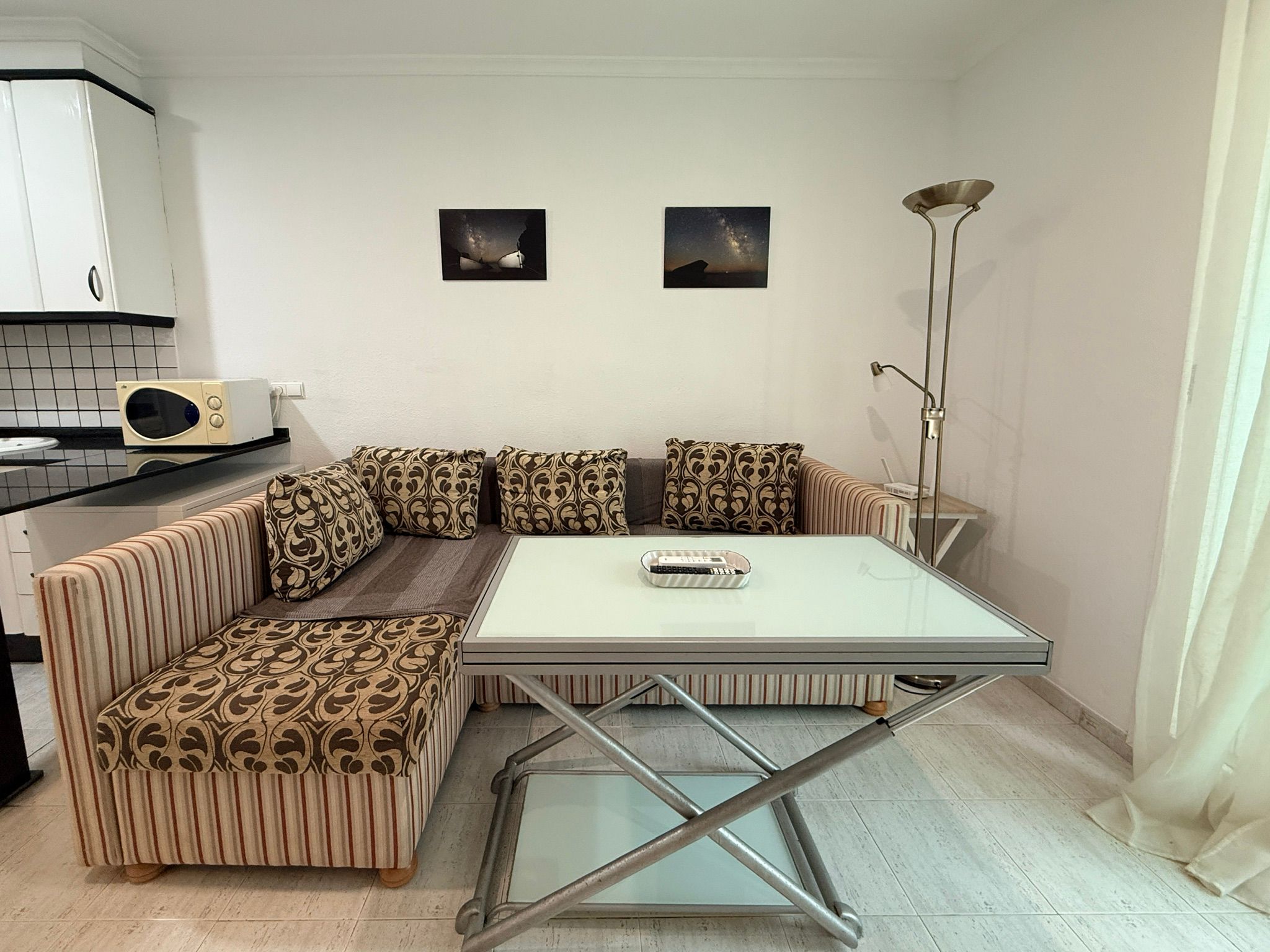 Apartment with one bedroom, a double bed (150 cm), living room with a comfortable sofa, one bathroom with a large bathtub, fully equipped kitchen, located on the first floor with a terrace. East/south orientation, very sunny and suitable for all months of the year. Air conditioning (hot/cold) in the living room and bedroom. TV with internet in the living room. Free Wi-Fi in the apartment and common areas. Optional parking subject to availability with an additional cost.